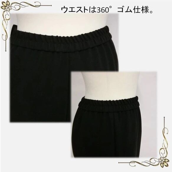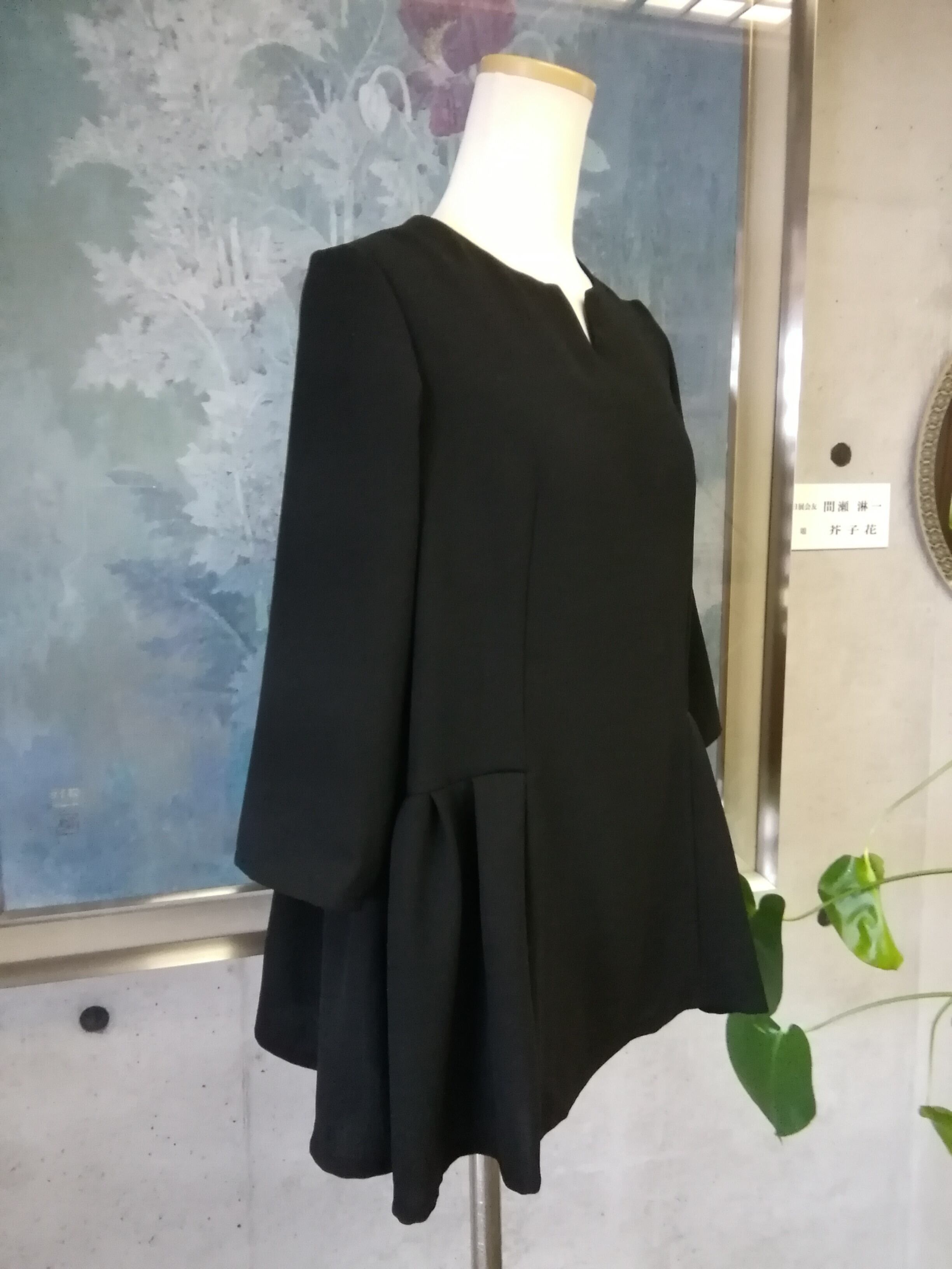 喪服にも使えるペプラムのブラウスに定番のパンツが付いたパンツスーツです。