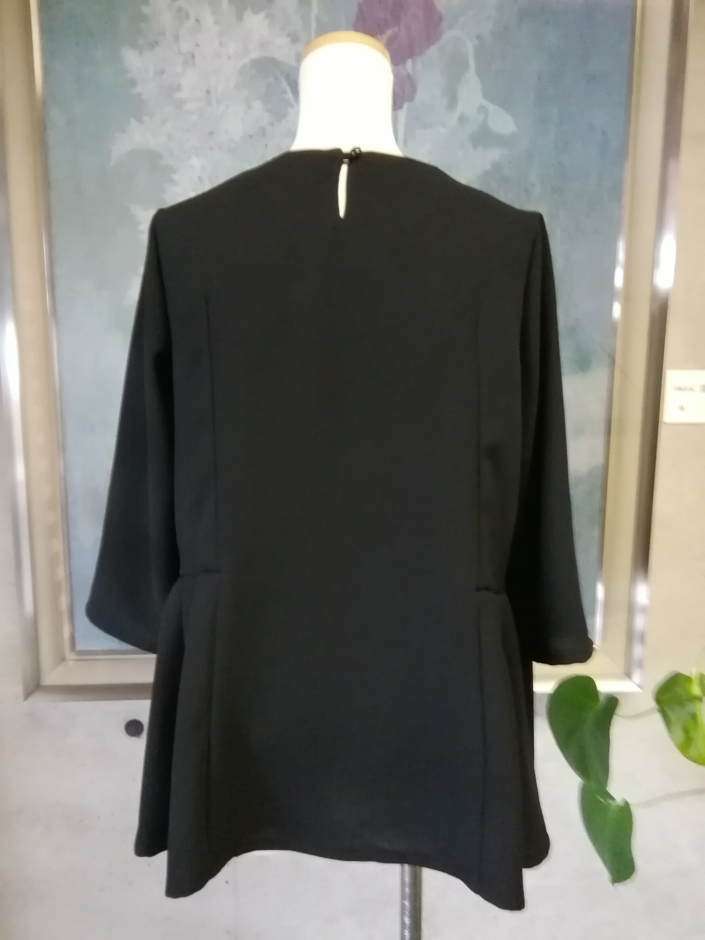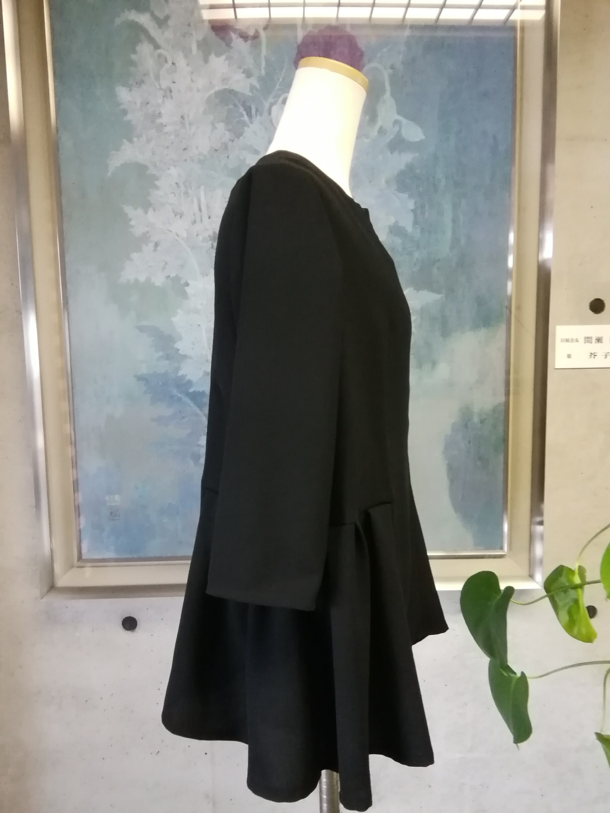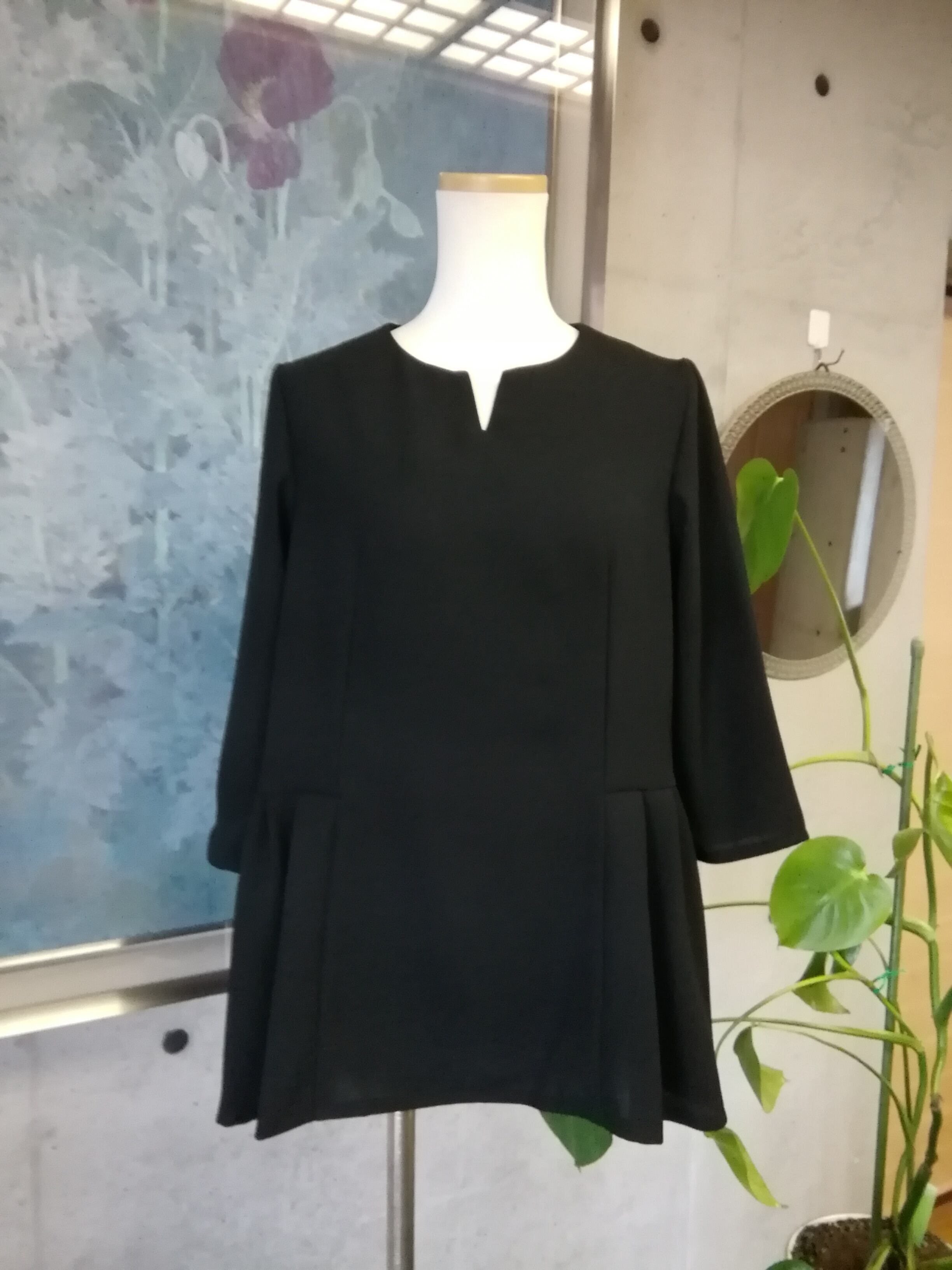 喪服にも使えるペプラムのブラウスに定番のパンツが付いたパンツスーツです。