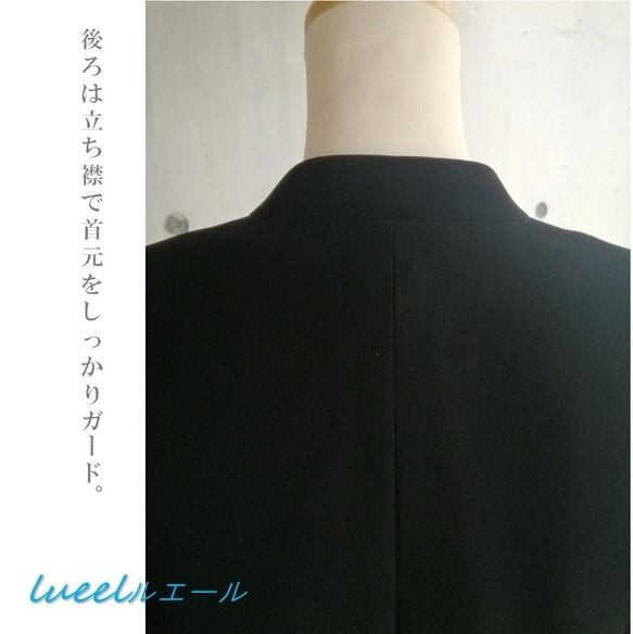 喪服 後ろ立ち襟のノーカラージャケット 清楚でシンプル 《S~3L》ブラックフォーマルジャケット 115501