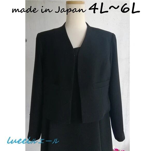 喪服 後ろ立ち襟のノーカラージャケット 清楚でシンプル 《4L~6L》ブラックフォーマルジャケット 115501-2