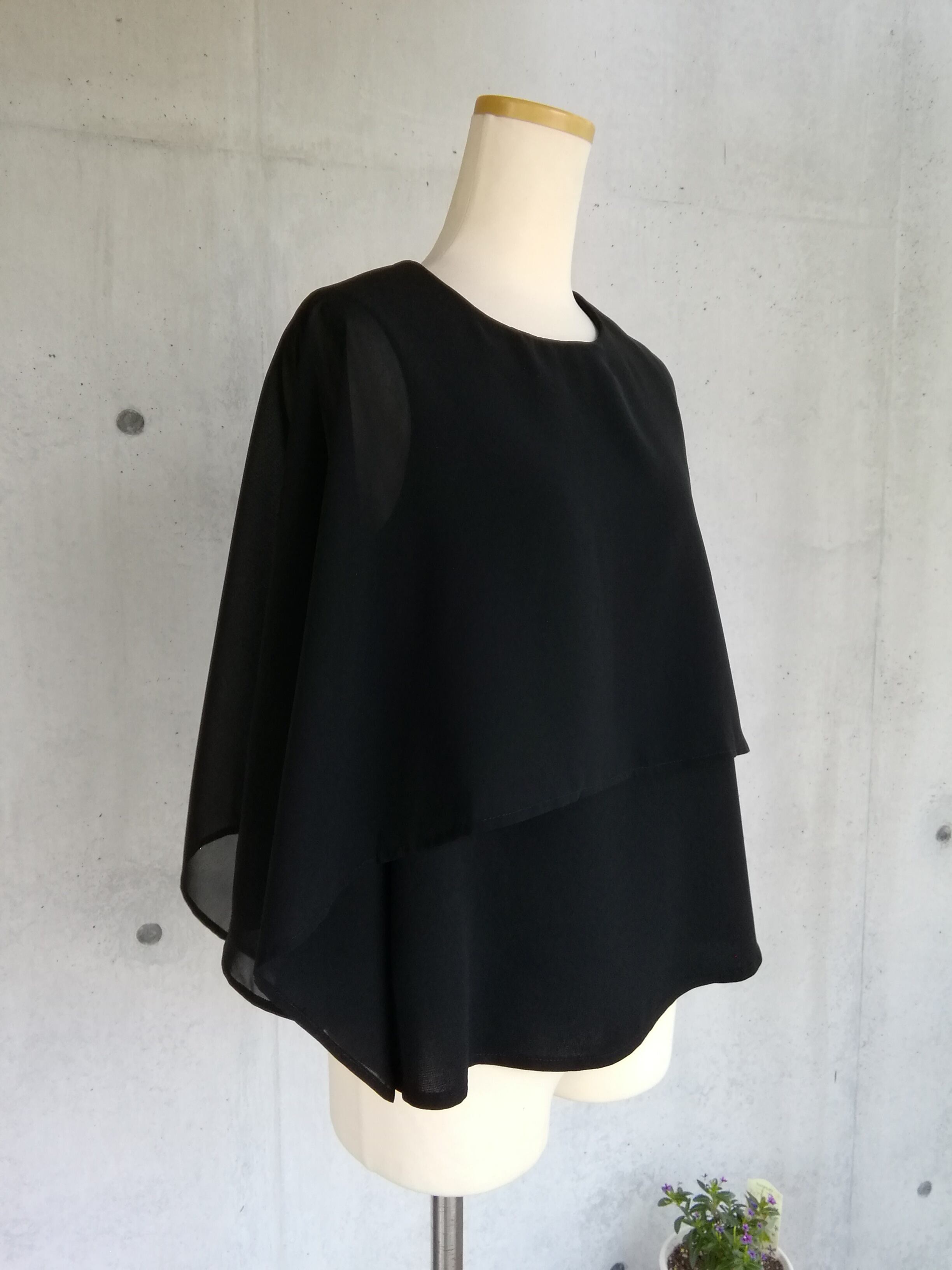 喪服 《M~3L》夏に涼しく着られるケープデザインブラックフォーマルブラウス 127301