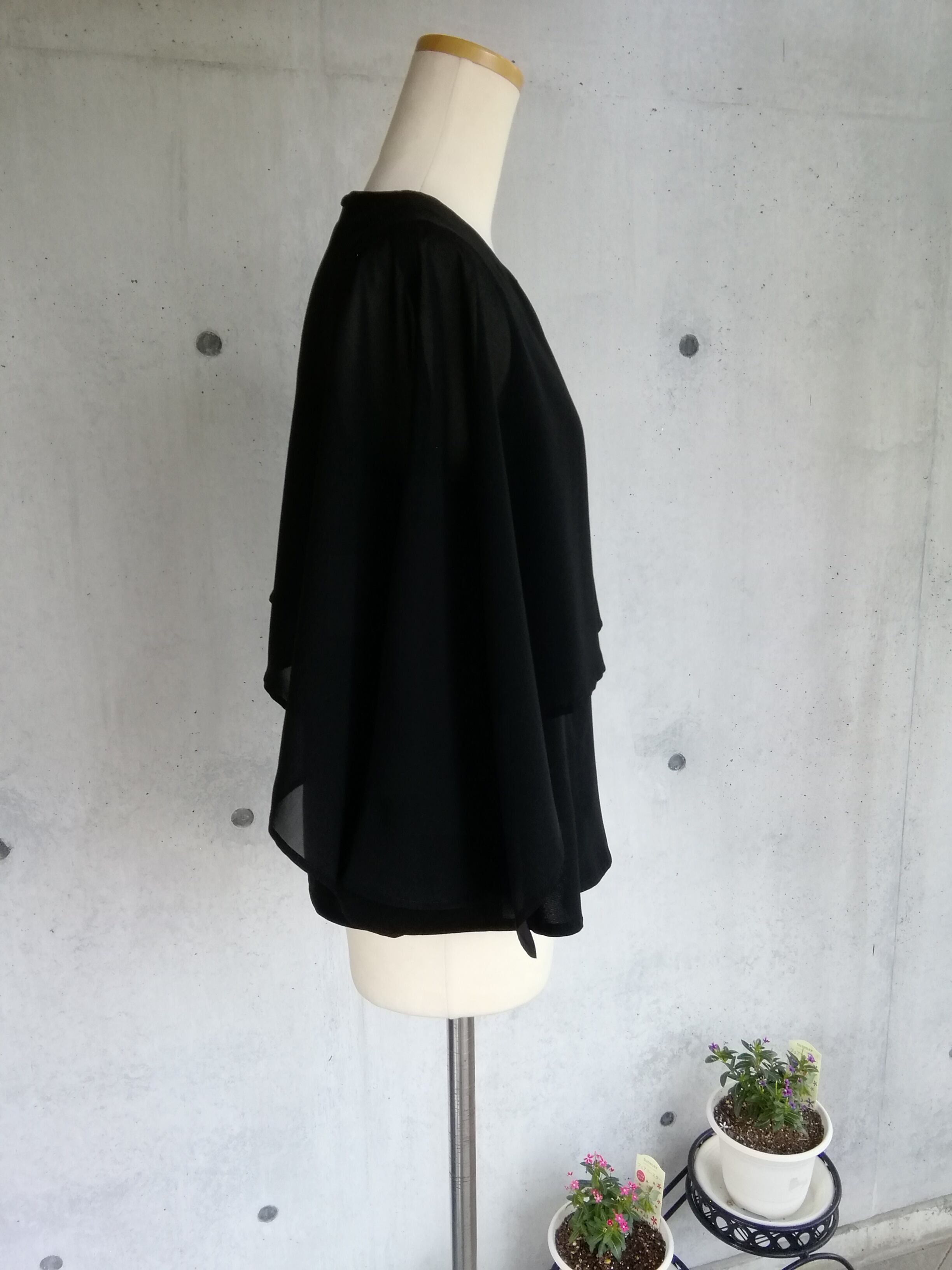 喪服 《7L~10L》夏に涼しく着られるケープデザインブラックフォーマルブラウス 127301-3