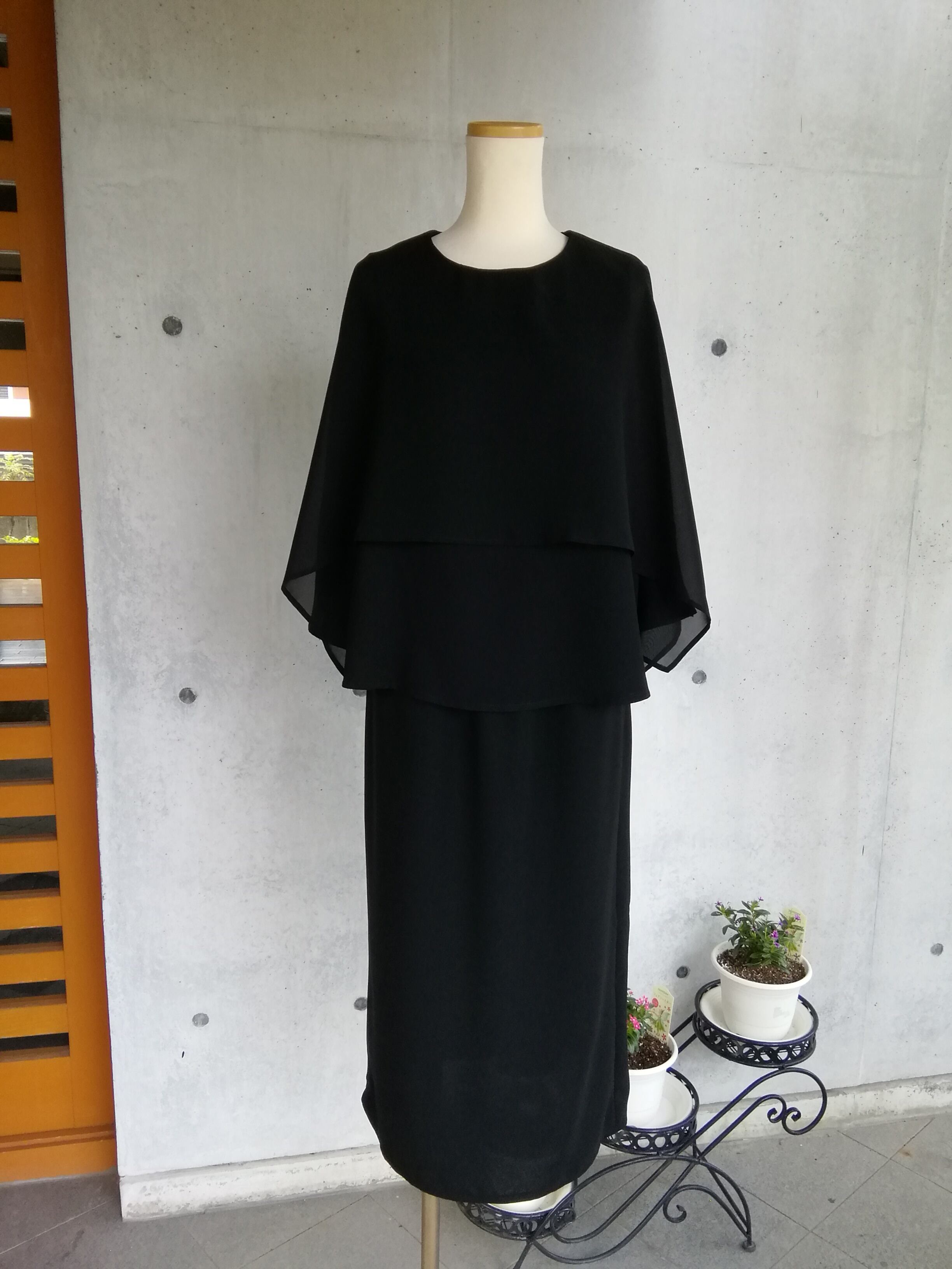 ケープ部分はシフォンを使用し、程よい透け感、軽く涼しい素材です。
