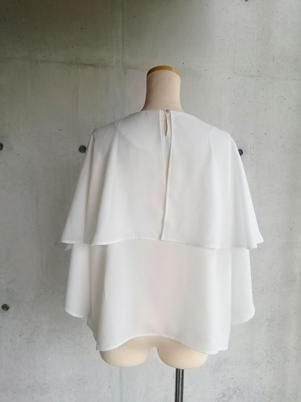 日本製 《7L~10L》ケープデザイン ドロップショルダー白のゆったりブラウス フォーマル 136300-3