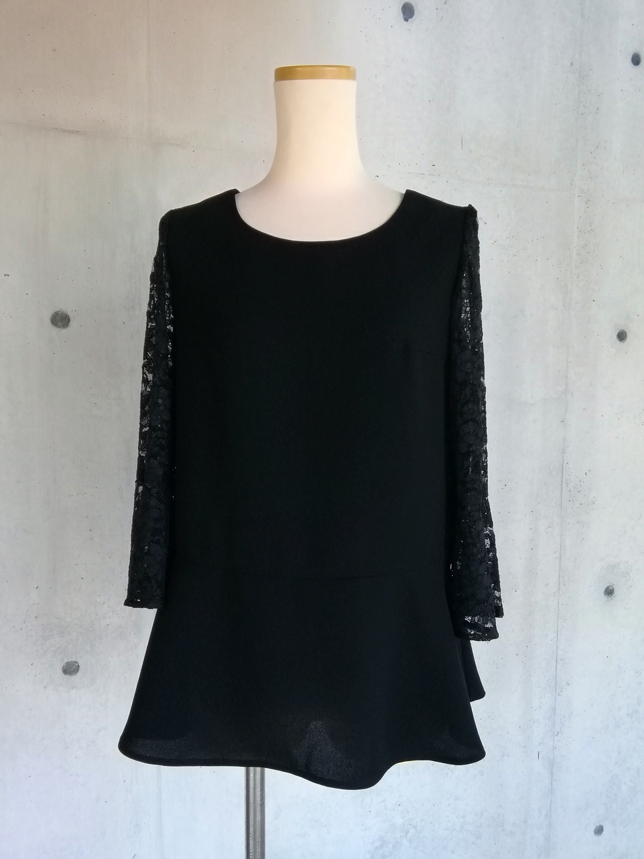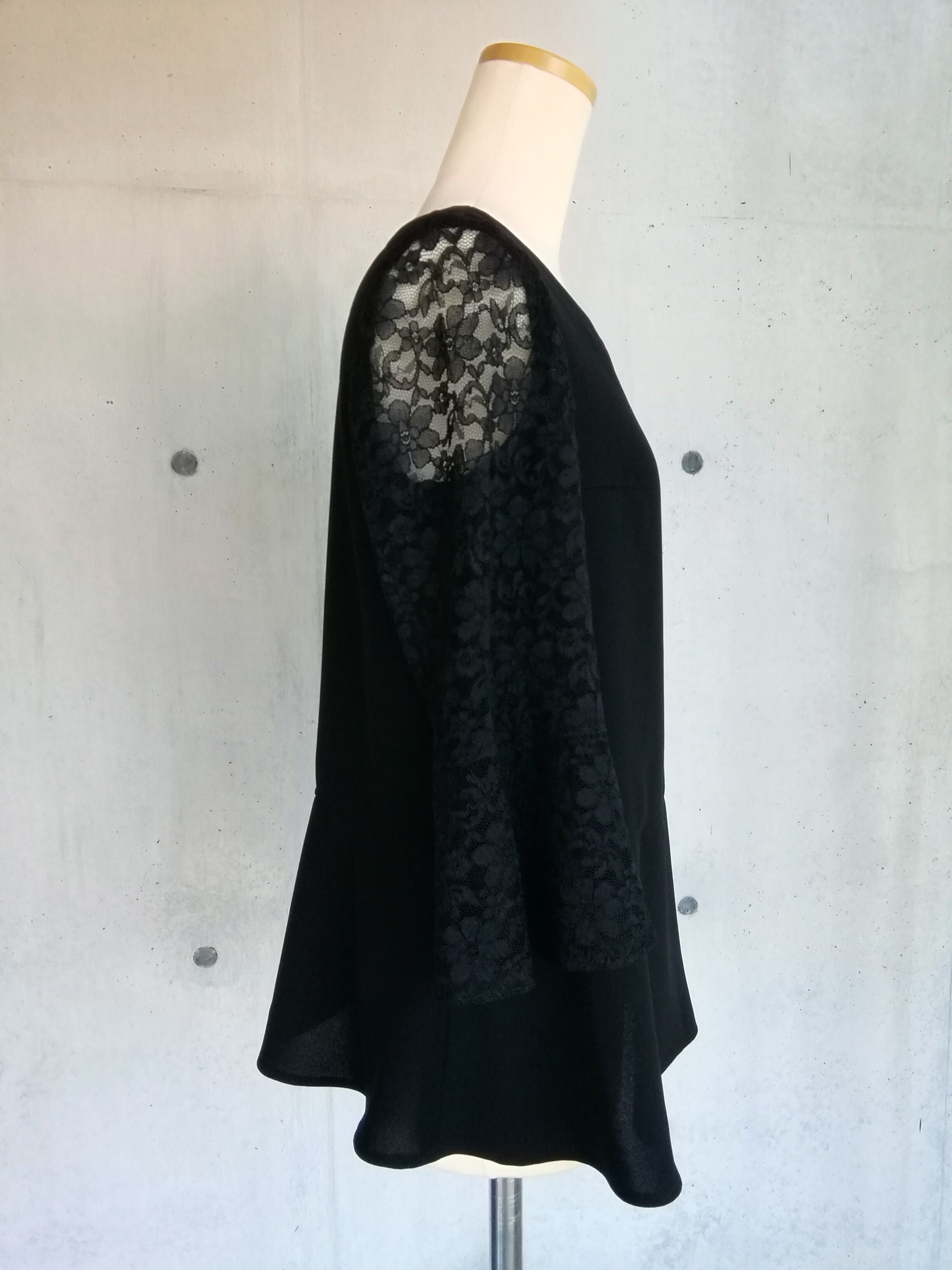 喪服 ブラックフォーマル 《M~3L》夏らしい袖レース使い ゆったりチュニックブラウス単品 126300