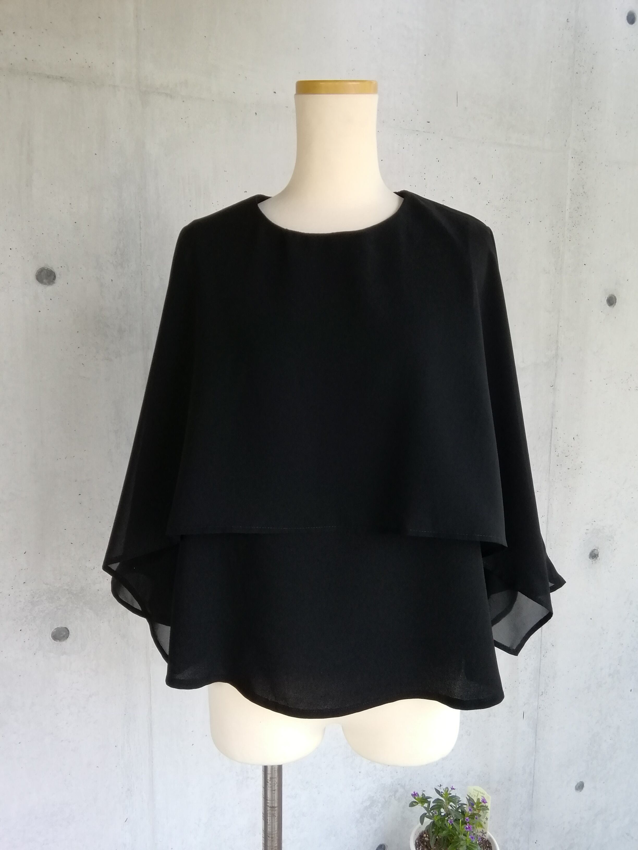 シフォンの上品な透け感が涼しげなケープブラウス。