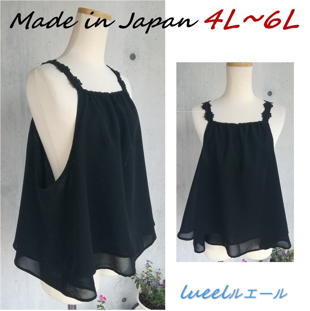 《4L~6L》透け感シフォン大人可愛い お花モチーフ体系カバーチュニックビスチェ黒 日本製 127601-20-2