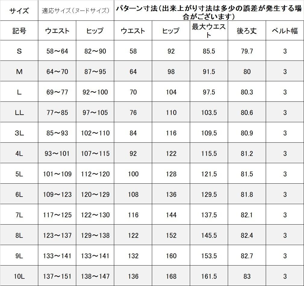 S~3Lサイズ(パターン上サイズの為、出来上がりに多少の誤差はございます。)