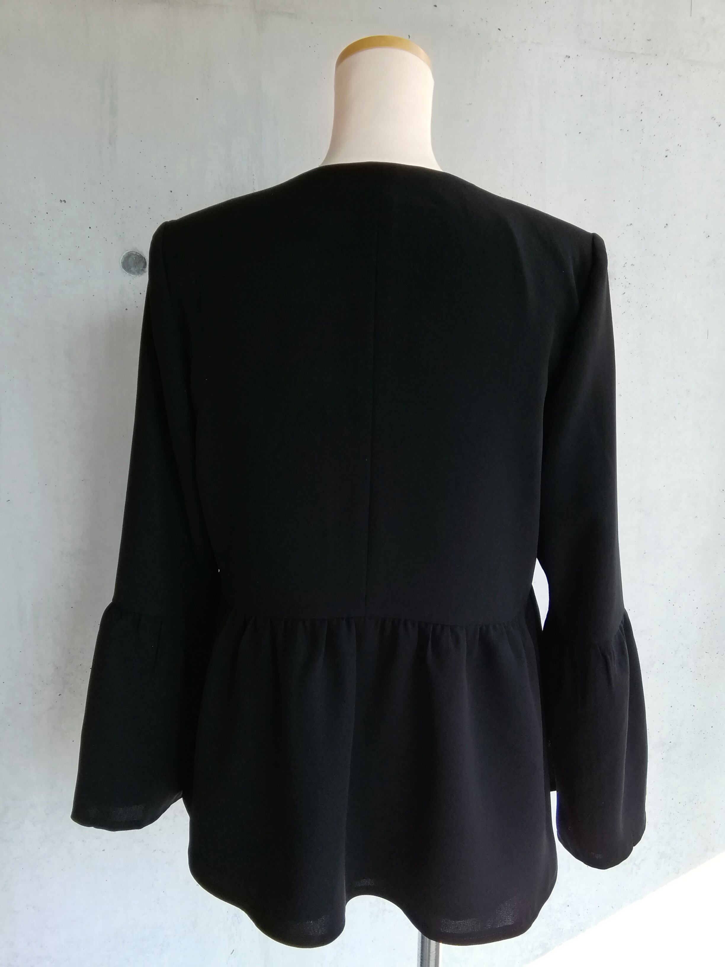 シンプルなブラックフォーマル用生地で作ったVネックのジャケットです。