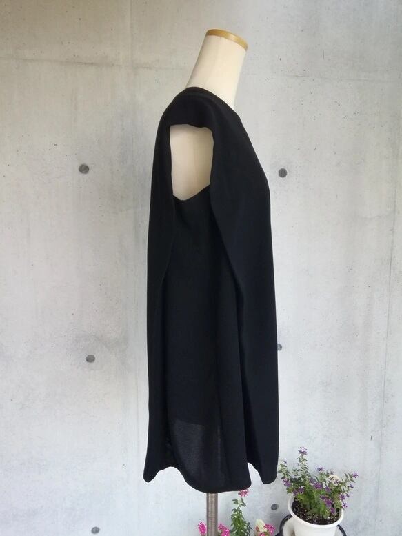 気になる個所をカバーできる大人のノースリーブチュニックブラウスが出来上がりました。ベースはオールシーズン用の透け感の無いブラックフォーマル用の生地を使用しました。