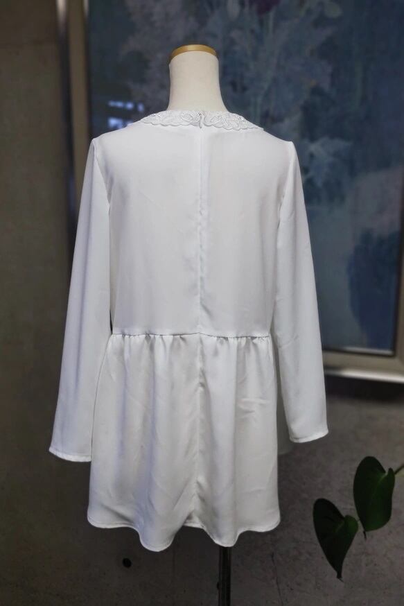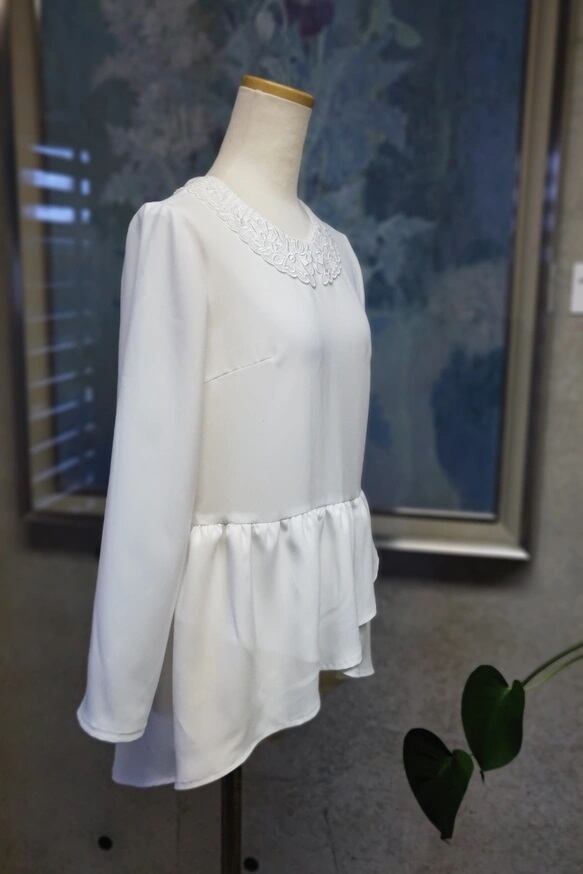 フォーマルシーンから普段使いまで!日本製レース襟の美シルエット白ペプラムブラウス 【Lueel(ルエール), S~3L, 品番:137302】