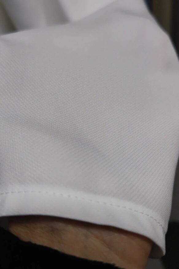 細番手の糸を二重組織(二重織りのような構造)にすることで、薄手でも透け感を軽減。