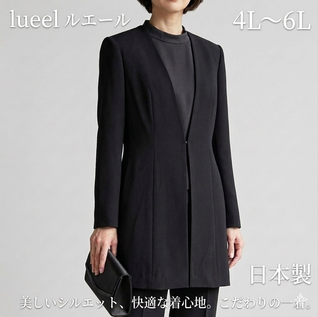 #lueel #ルエール #ブラックフォーマル #喪服 #礼服 #サイズオーダー無料 #日本製 #ロングジャケット #冠婚葬祭 #受注生産 #3Lまで #セミオーダー