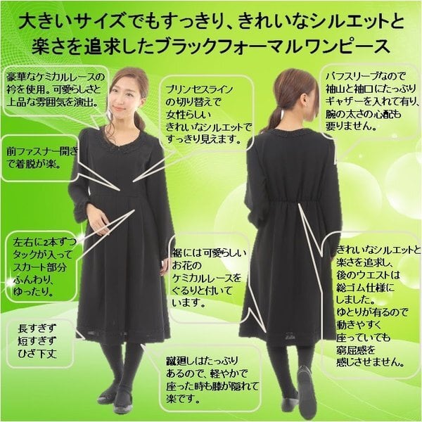 喪服 レディース 大きいサイズ 礼服 漆黒 オシャレ ブラックフォーマルワンピース ゆったり 日本製 139811