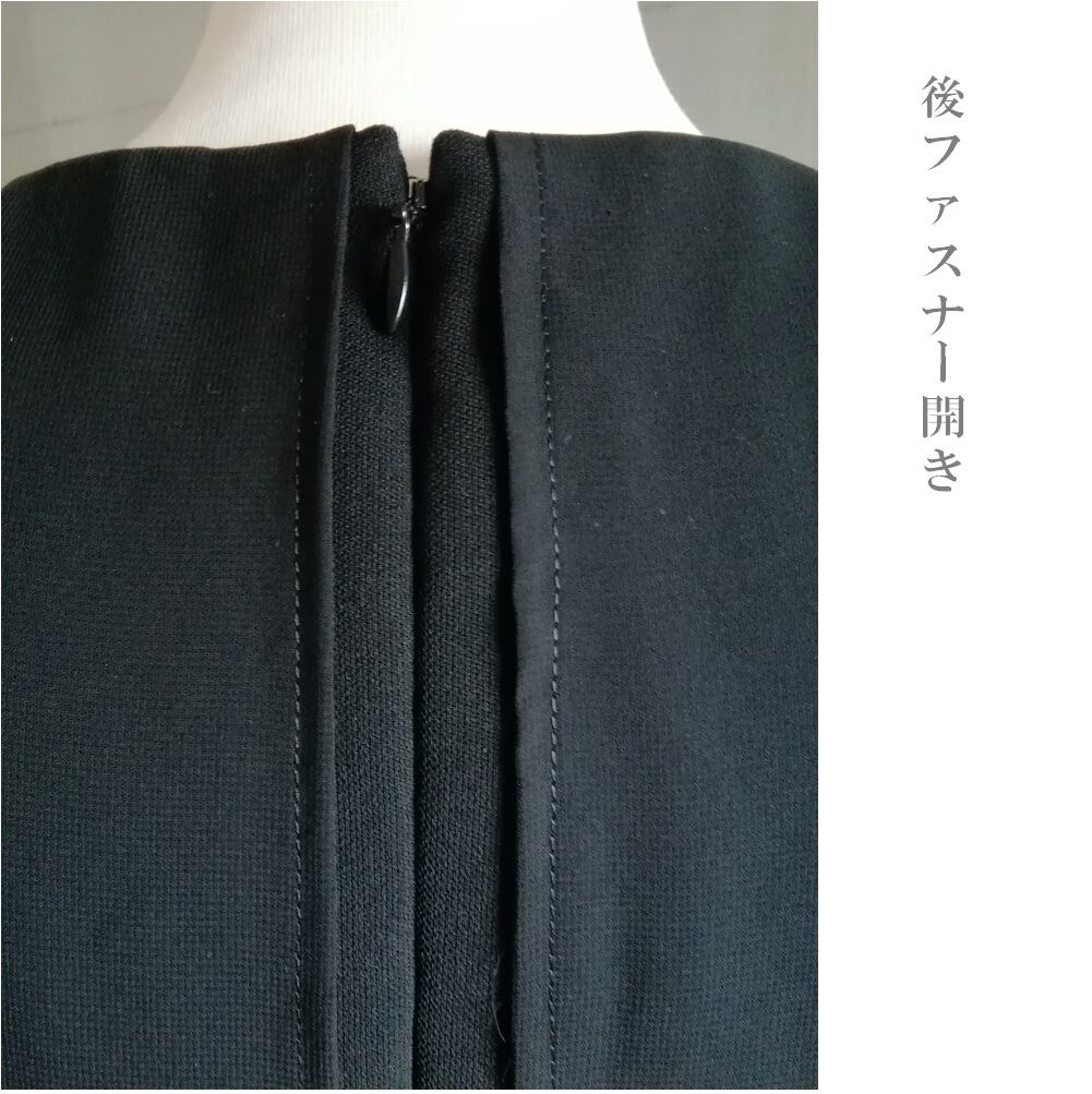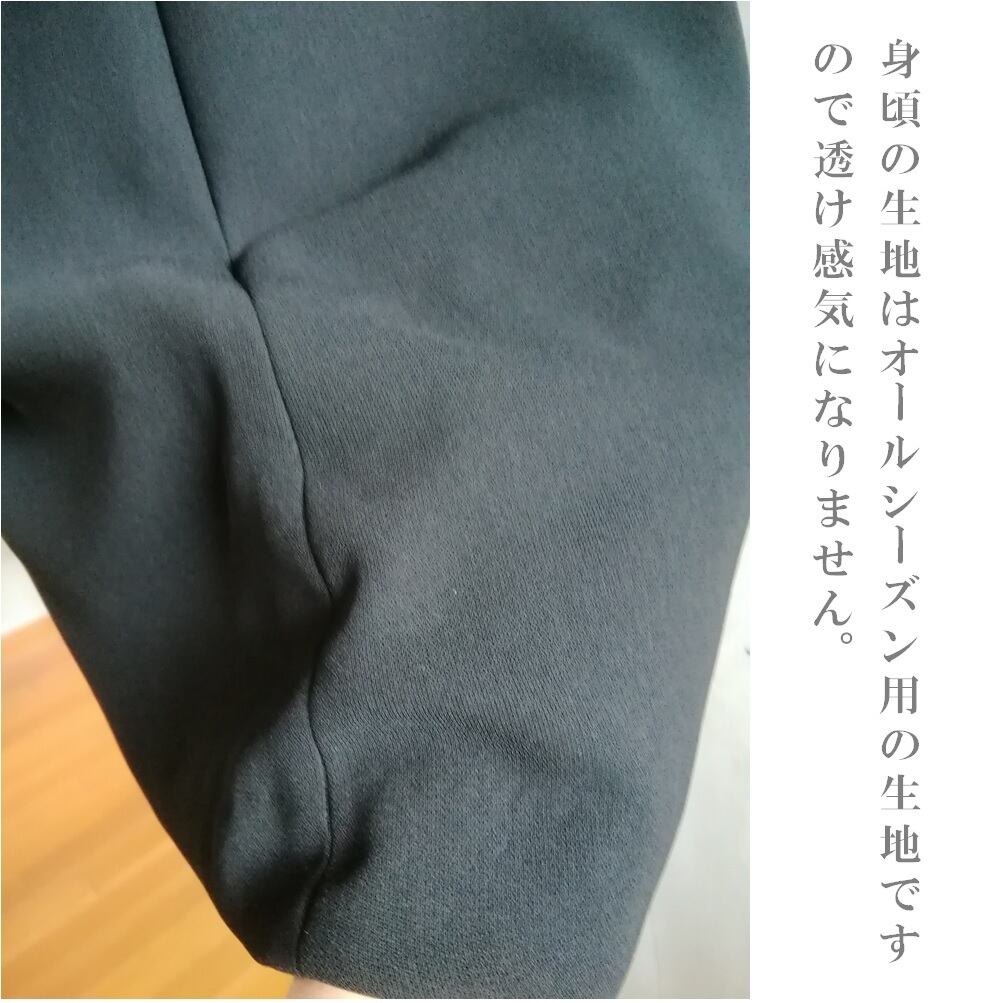ブラックフォーマル用の中肉素材を身頃に、袖はブラックフォーマル用の程よい透け感、清涼感のあるシフォンを使用しました。