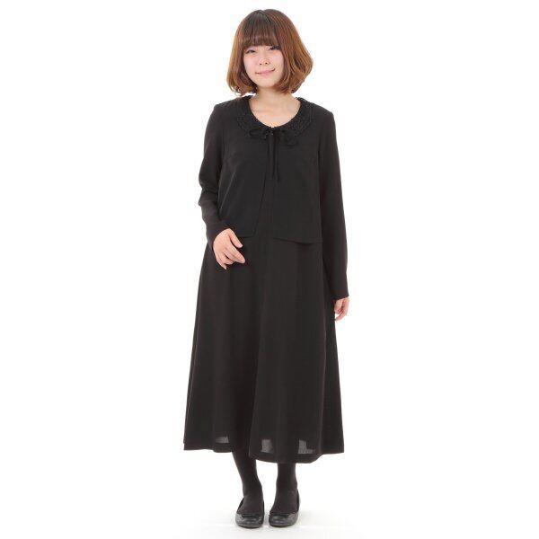 喪服 大きいサイズ ロング丈 ロング 前開き ワンピース 礼服 日本製 レース オールシーズン お洒落 135801-2