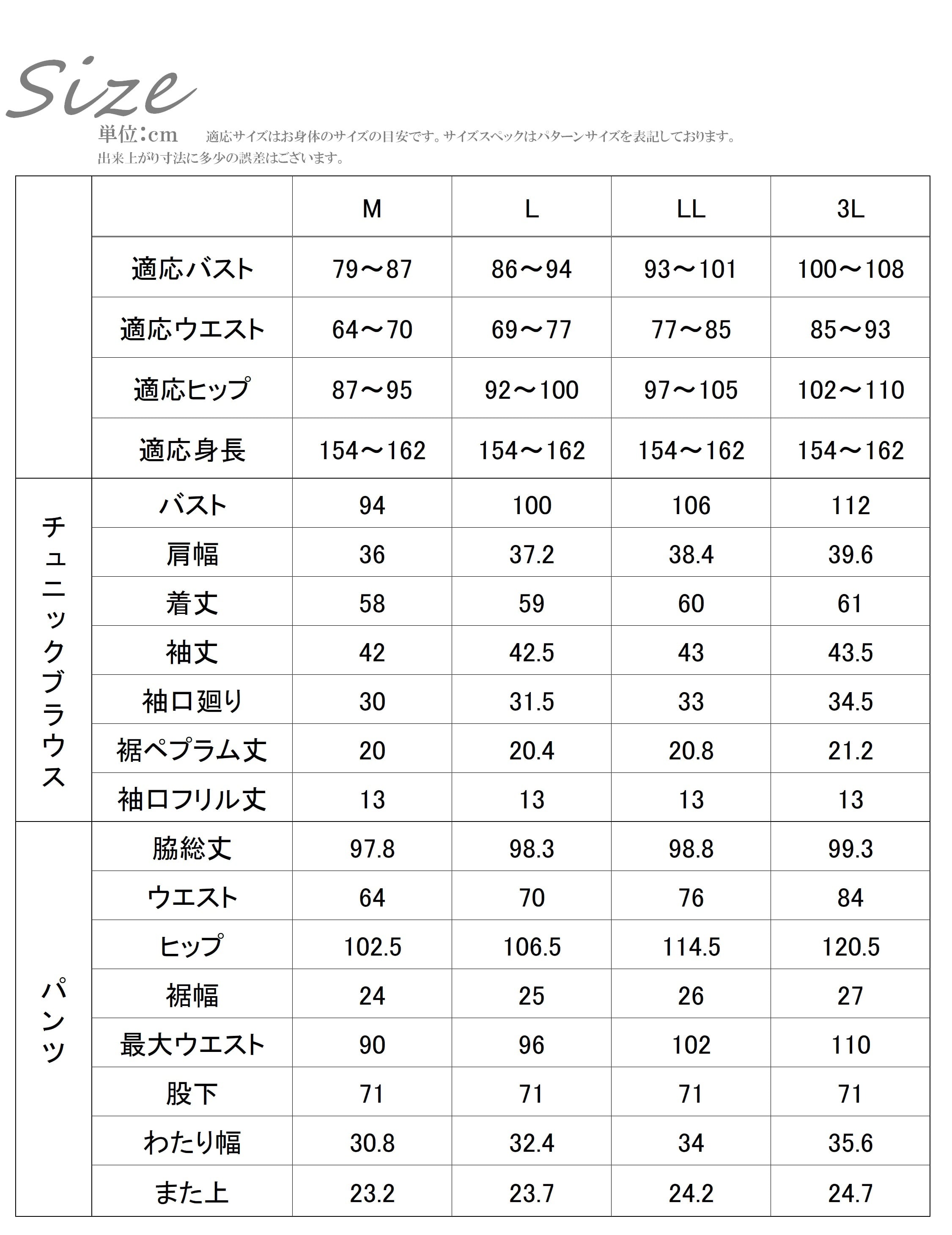 サイズ明細ご確認ください。