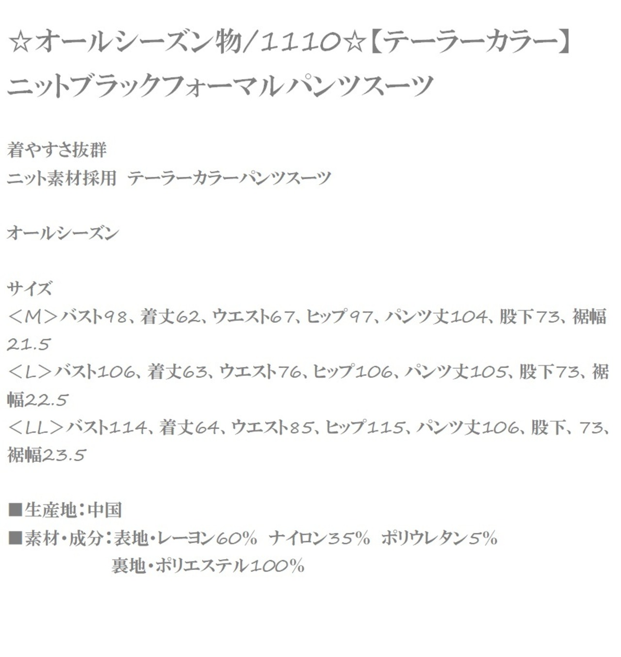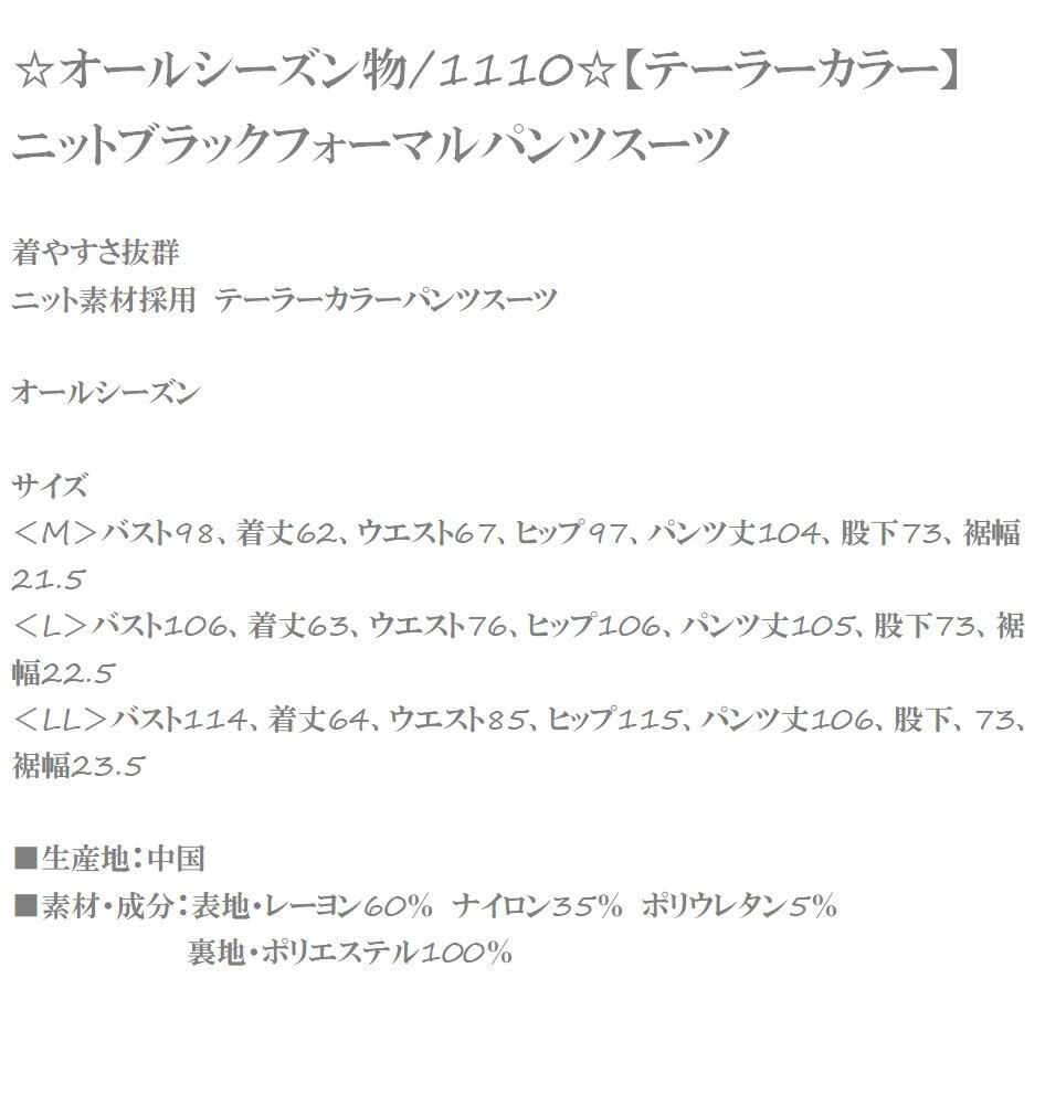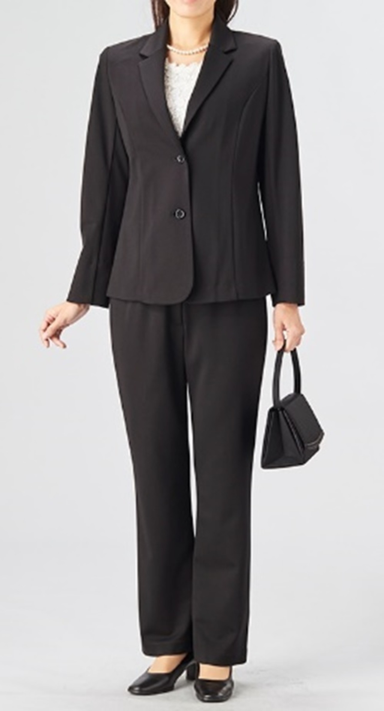 【売り切り価格】喪服 レディース ブラックフォーマル 動きやすいニット素材のパンツスーツ 1110