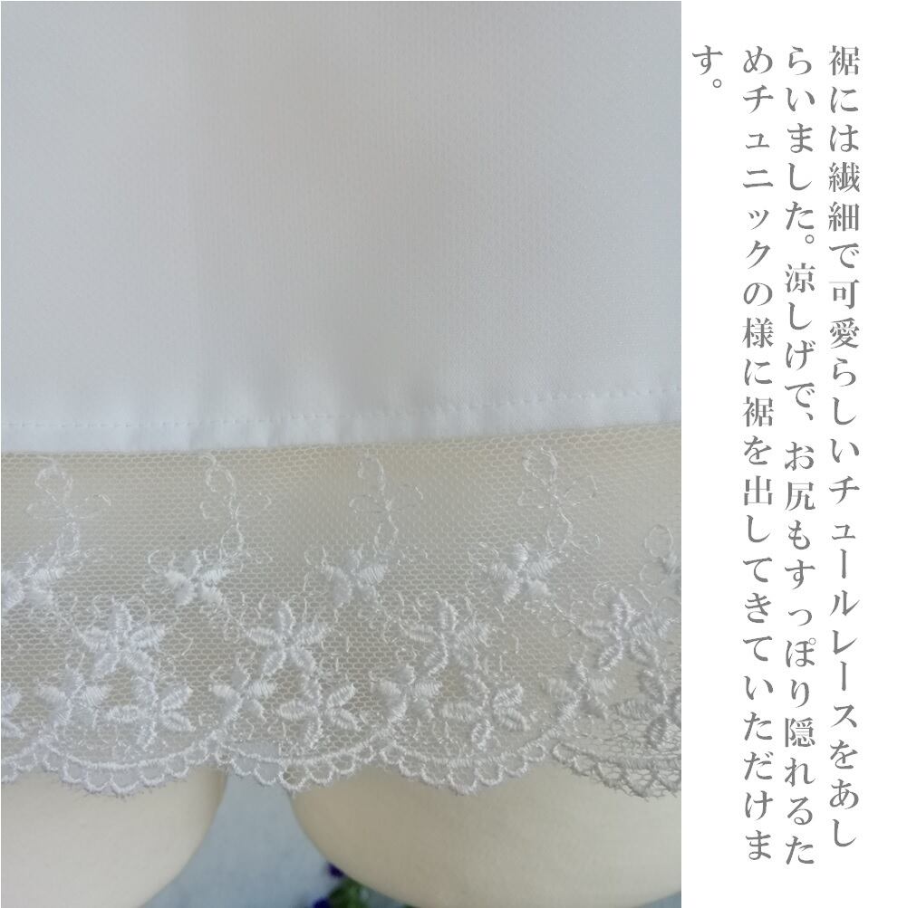 ブラウスは程よいゆとりが有り、アウトして着られる様に裾にレースをあしらっています。