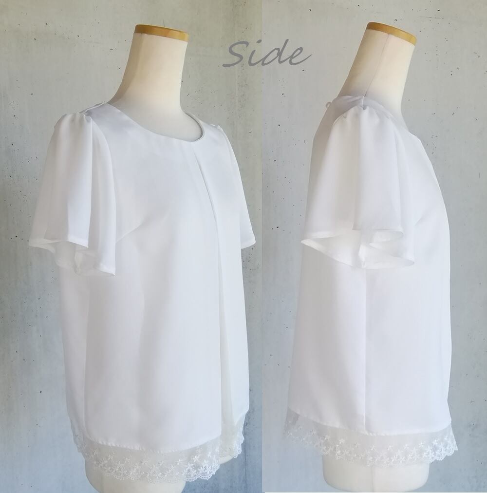 【日本製】フォーマルにもなるきれいめ裾レース使いブラウス 《S~3L》小さいサイズから大きいサイズ 124300