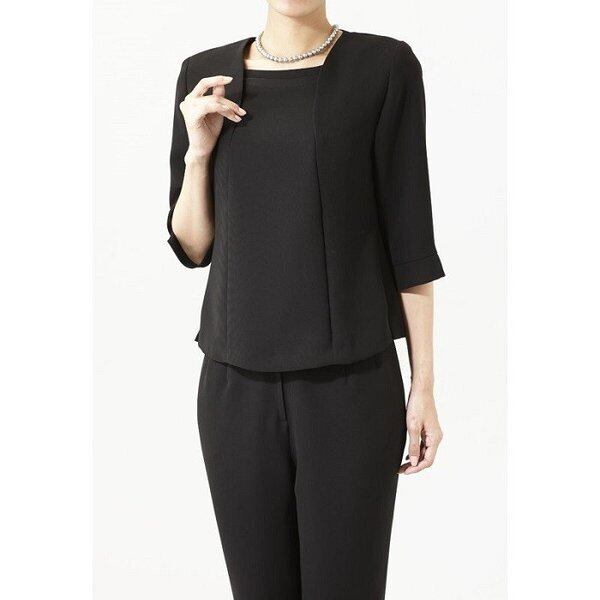 【送料無料】日本製 レディース 喪服 礼服 ブラックフォーマル パンツ スリーピース 3点セット 冠婚葬祭 2141