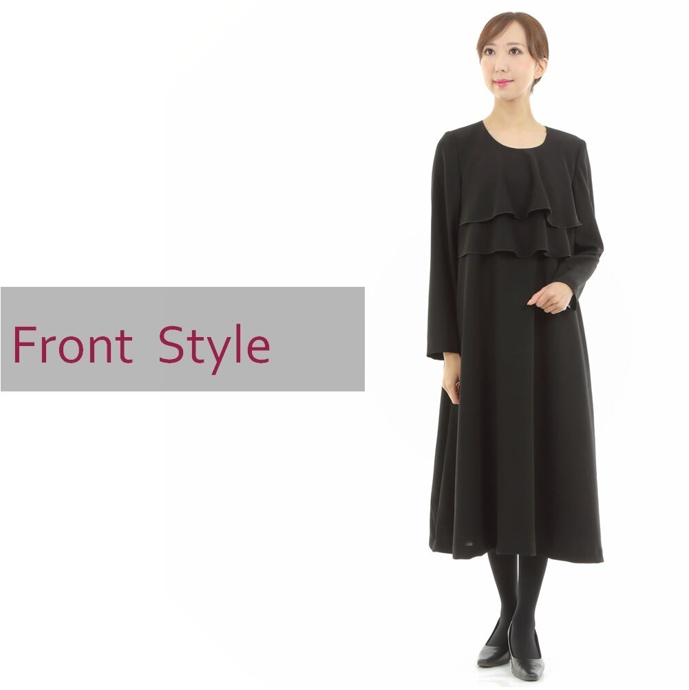 喪服 大きいサイズ ティアード フリル ワンピース レディース ロング丈 礼服 おしゃれ ゆったり 113807-2