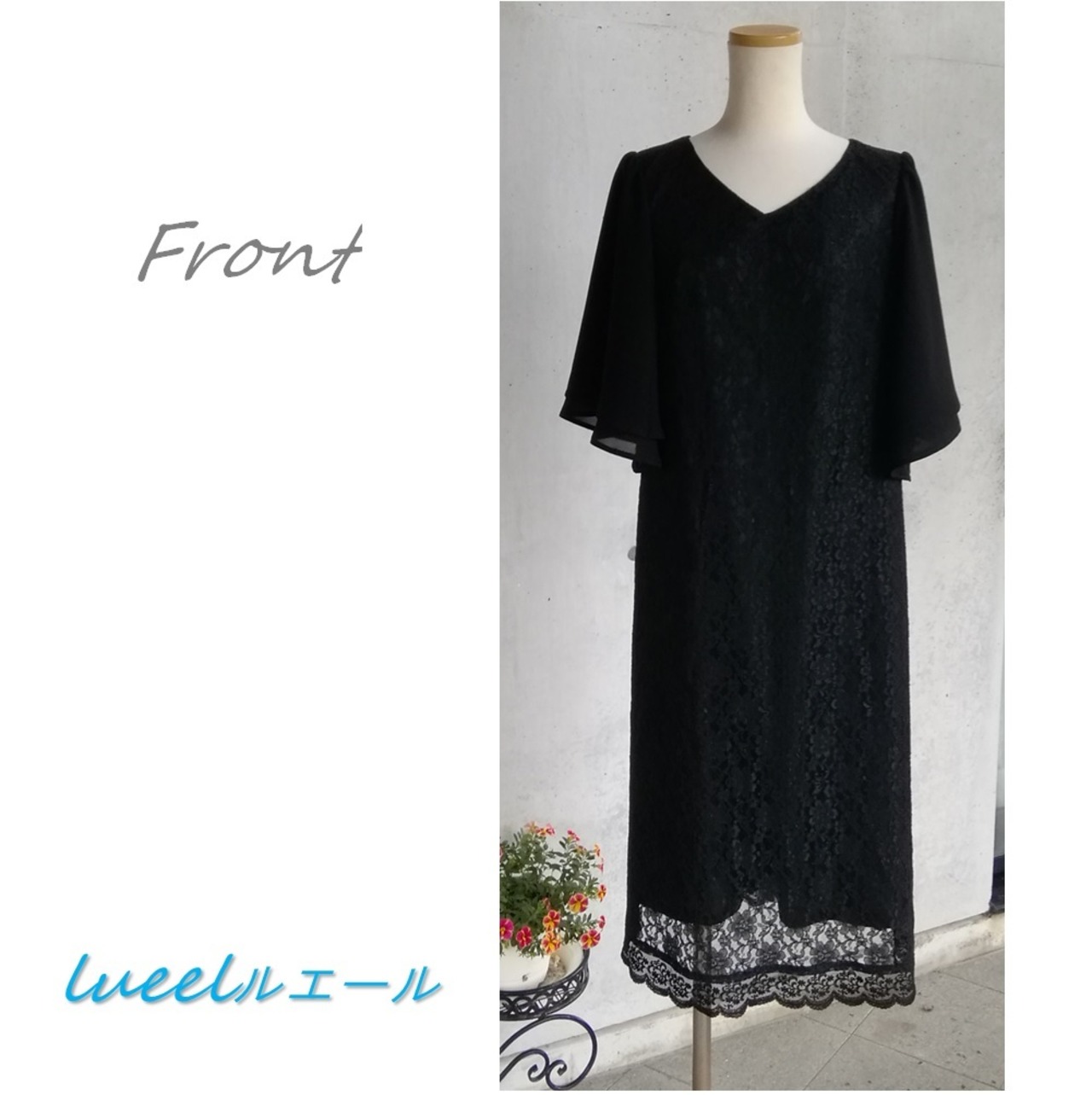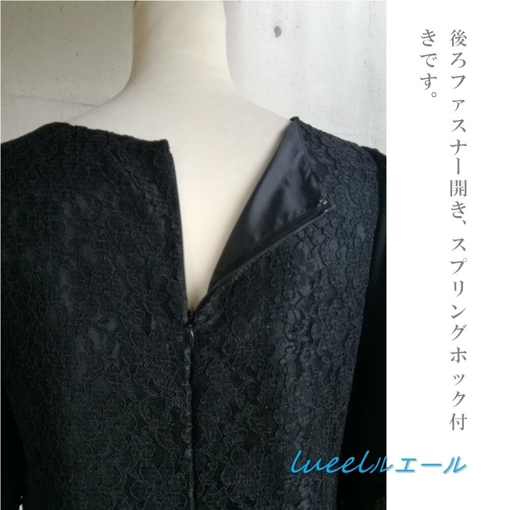 喪服でも使える総レースのパーティードレス《S~3L》ブラックフォーマルワンピース 礼服 日本製 125800