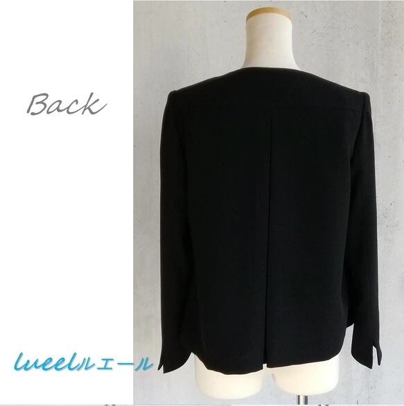 シンプルなブラックフォーマル用生地で作ったノーカラージャケットです。